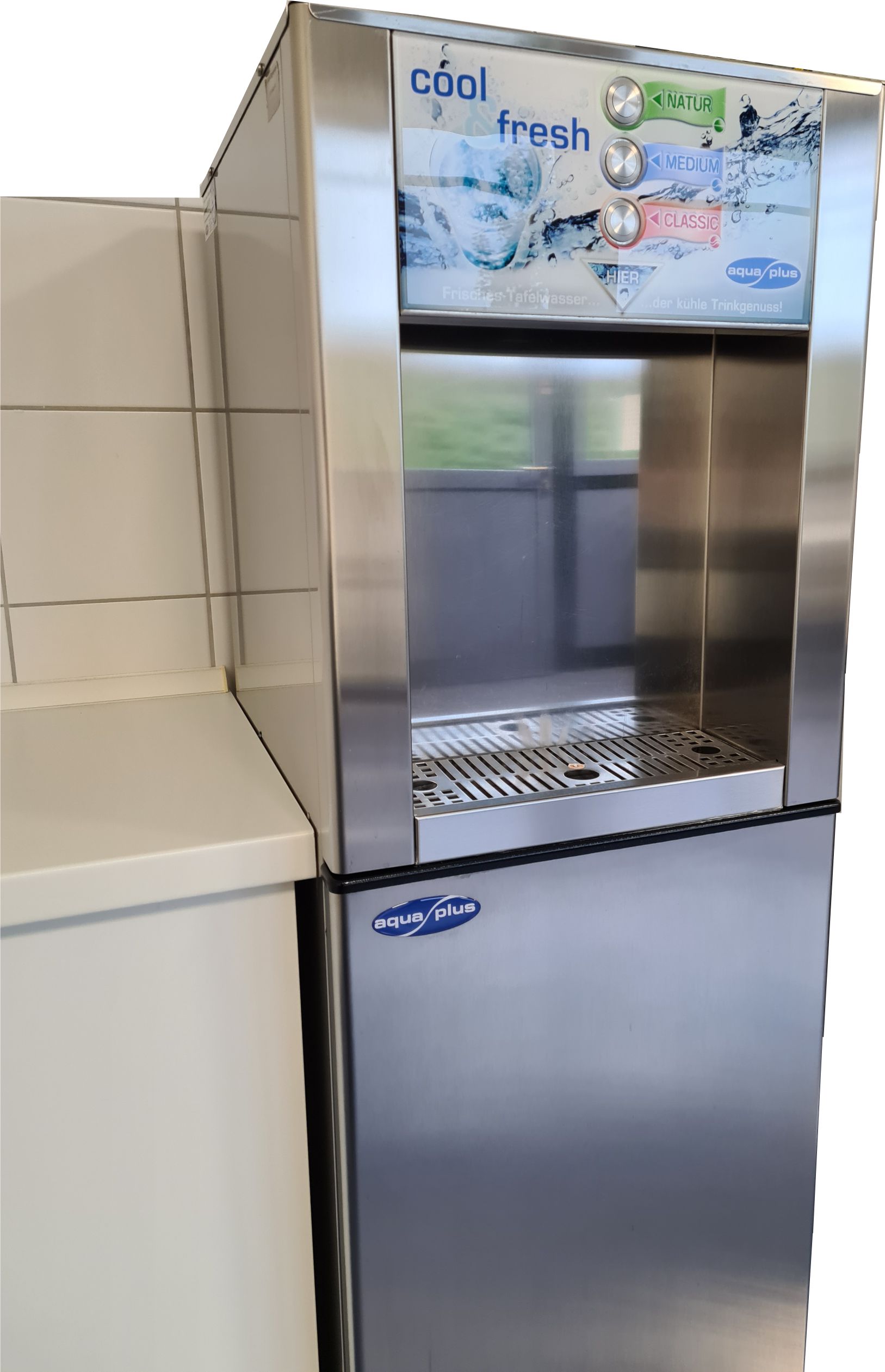 - leitungsgebundene Wasserspender, die fest an das Trinkwassernetz angebunden sind (Beispiel Bild 1) und